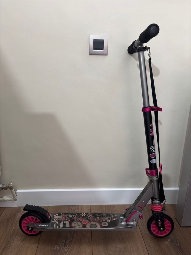 Detalles del productoPatinete Oxelo con diseño en rosa y gris. Ideal para niños y niñas.