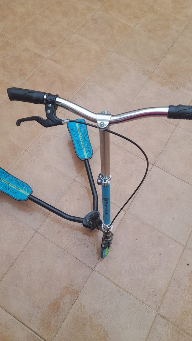 Detalles del productoPatinete Park City Frog infantil, con sistema de plegado. Estructura de aluminio, freno delantero. Soporta un peso maximo de 59 kg. Tamaño sin plegar. 80x46x88 CMS. Tamaño plegado. 76x22x23 CMS