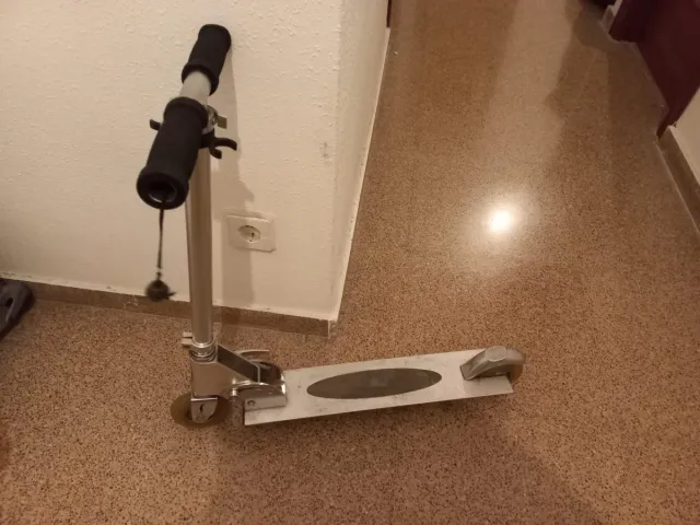 Patinete de patinaje con estructura de aluminio. Tenemos dos unidades. 65 de rueda a rueda. 90 de alto - Manillar con puños de goma. - Plataforma antideslizante. - Ruedas de goma.