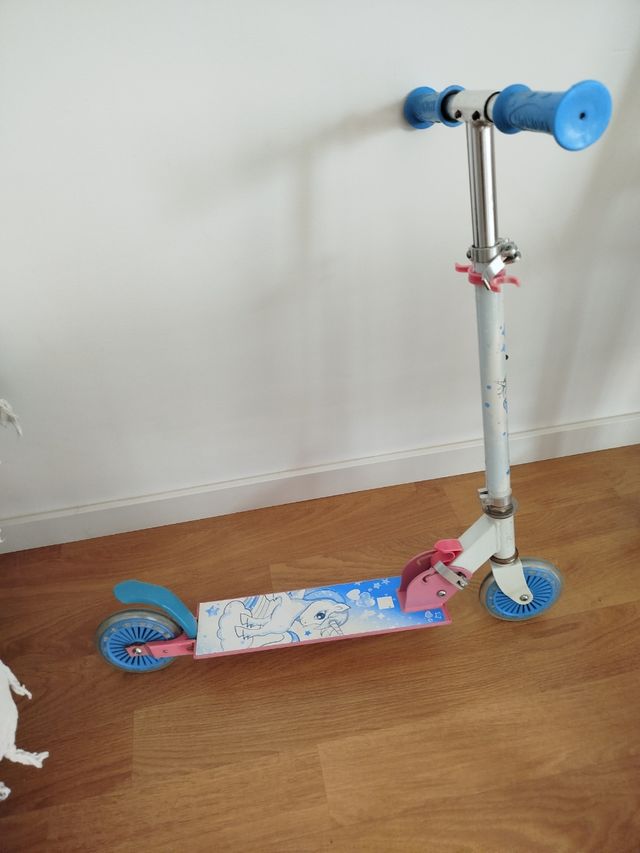 Detalles del productoEste patinete infantil presenta un diseño divertido con unicornios y detalles en rosa y azul. Es plegable, lo que facilita su transporte y almacenamiento.