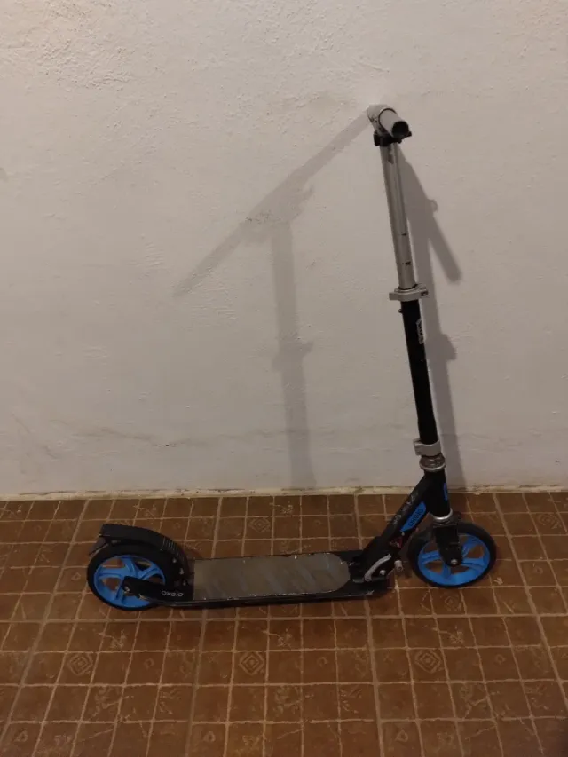 Patinete plegable oxelo con ruedas azules y manillar ajustable. - Estructura de metal. - Ruedas de goma. - Plataforma antideslizante. Hago envíos