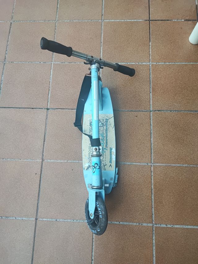 Patinete plegable Boomerang. Azul y gris. Manillar y ruedas negras