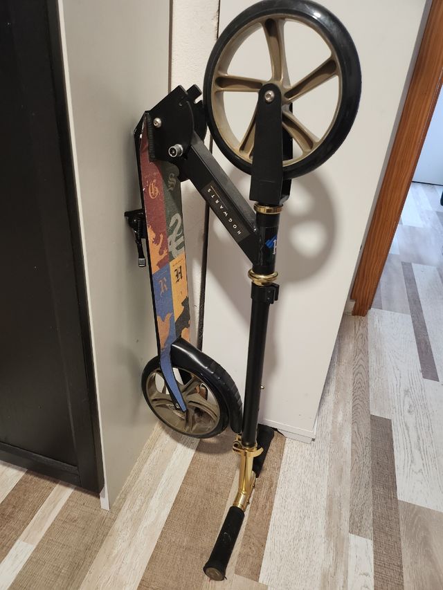 Detalles del productoPatinete plegable con diseño de Hogwarts. Está en muy buen estado y listo para usar.