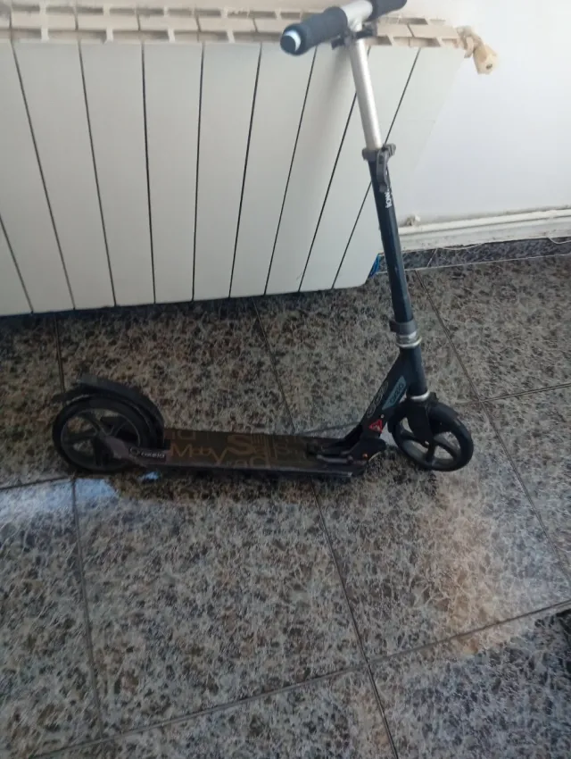 Patinete plegable en buen estado, ideal para desplazamientos urbanos. - Manillar ajustable en altura. - Ruedas de goma. - Plataforma antideslizante.
