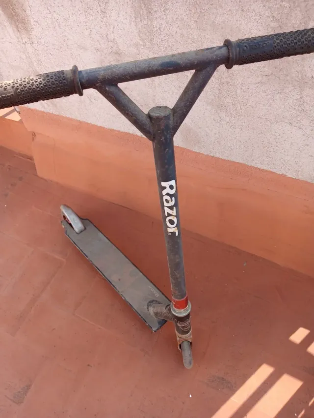 Patinete de la marca Razor, ideal para niños. [EN LA IMAGEN SE VE SUCIO ,SE ENTREGA LIMPIO YA QUE TIENE POLBO DE ESTAR GUARDADO] - Manillar con empuñaduras de goma.