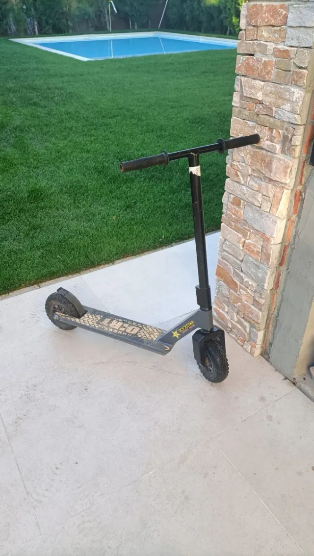 Patinete con diseño deportivo y ruedas todoterreno. - Plataforma con diseño antideslizante. - Manillar con puños de goma. - Ruedas de goma para mayor agarre.