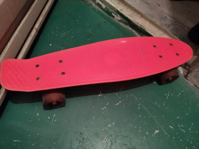 Patinete de estilo retro en color rosa. - Tabla de plástico texturizado. - Ruedas de goma. - Ejes metálicos.