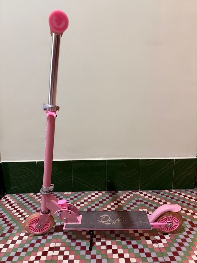 Patinete infantil de color rosa. - Ruedas con luces. - Manillar ajustable. - Plataforma antideslizante.