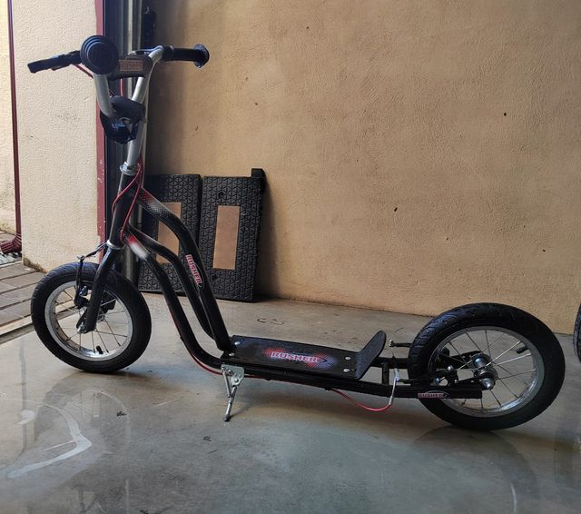 Detalles del productoPatinete Rusher con ruedas hinchables de 12 pulgadas. Frenos delantero y trasero tipo bici. Plataforma ancha. Y pata de cabra. Apenas uso. En muy buen estado. Edad recomendada entre 4-9 años. Manillar regulable en altura. Tengo dos unidades. No hago envíos. Entrega en mano.