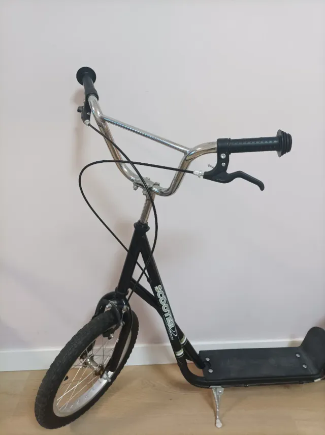 Detalles del productoPatinete tipo scooter con manillar de estilo BMX, freno delantero y trasero. Ideal para desplazamientos urbanos o para disfrutar en parques.