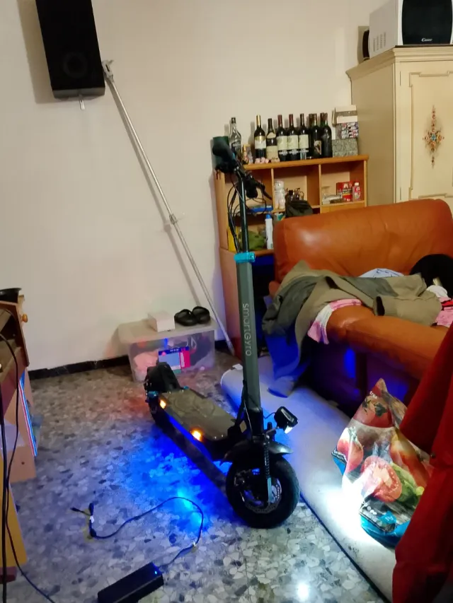 Detalles del productoPatinete eléctrico Smartgyro Rokwey con luces LED azules.