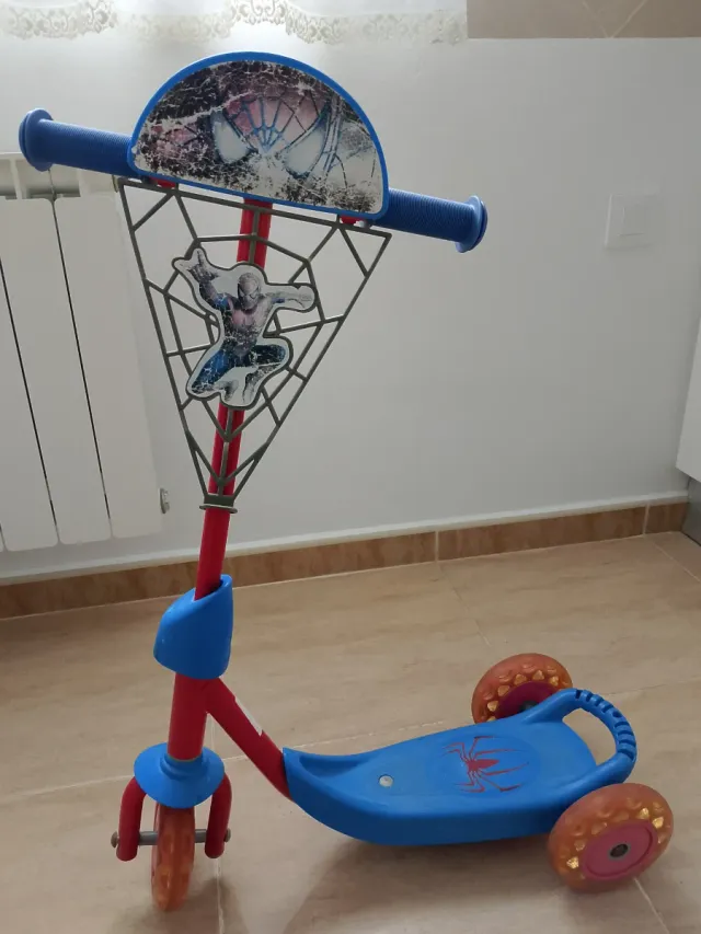 Patinete infantil con diseño de Spiderman. - Tres ruedas para mayor estabilidad. - Manillar ajustable. - Base antideslizante.