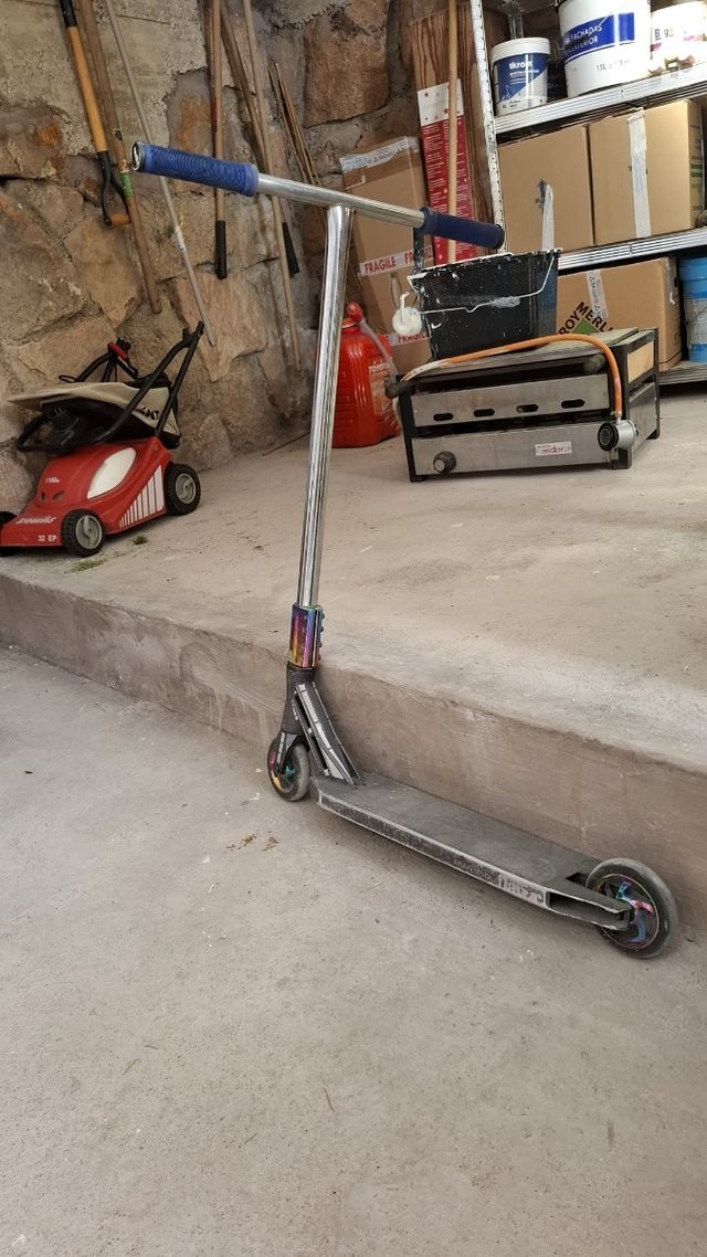 Detalles del productoPatinete Stunt usado. Las ruedas están un poco usadas, pero el resto de componentes está en buenas condiciones, con los rallones normales.