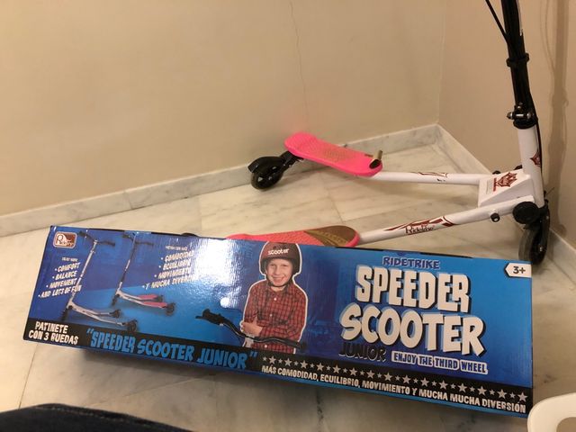 Patinete de tres ruedas en perfecto estado. Con caja original de embalaje. Solo tiene despegada la pegatina del pedal izquierdo. Lo demás perfecto.