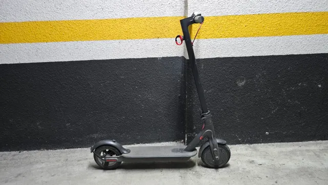 Patinete eléctrico Xiaomi M365 en color negro. - Diseño plegable para facilitar su transporte. - Ruedas de 8.5 pulgadas. - Freno trasero. - Sin placa DGT