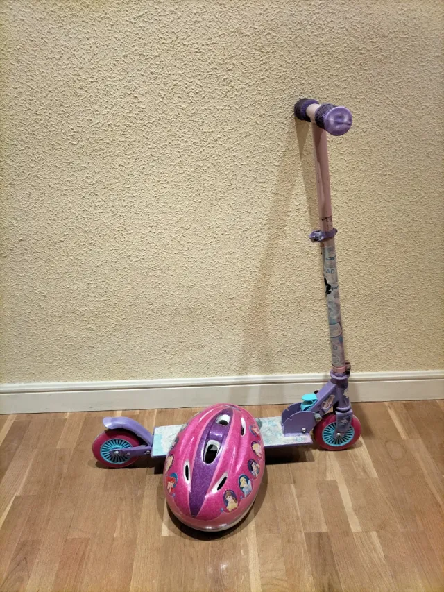 Patinete y casco infantil morado
