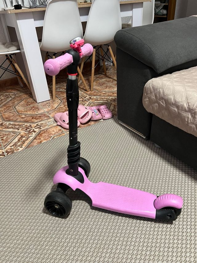 Patinete infantil Yoleo de tres ruedas en color rosa. - Manillar ajustable en altura. - Ruedas delanteras con luces. - Plataforma antideslizante.