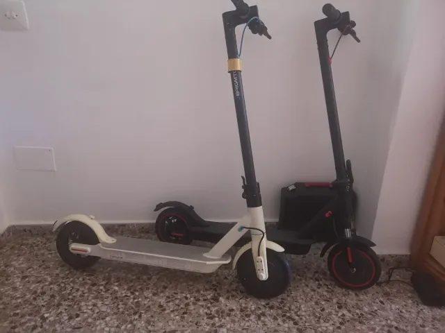 Detalles del productoDos patinetes eléctricos, ideales para piezas o recambios, problemas de batería, la batería del blanco dura unos 10 minutos.... La del negro da fallo de batería... Lo demás en perfecto estado... Se venden o cambian por algun móvil tablet o portátil en condiciones...