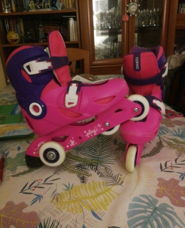 patines infantiles de color rosa talla 32-34 están adaptados para aprender a patinar también se pueden poner las ruedas en linea