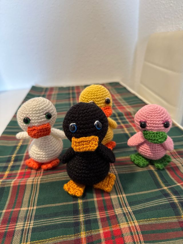 patitos tejidos a mano con la técnica de crochet. -patito amarillo y diferentes colores