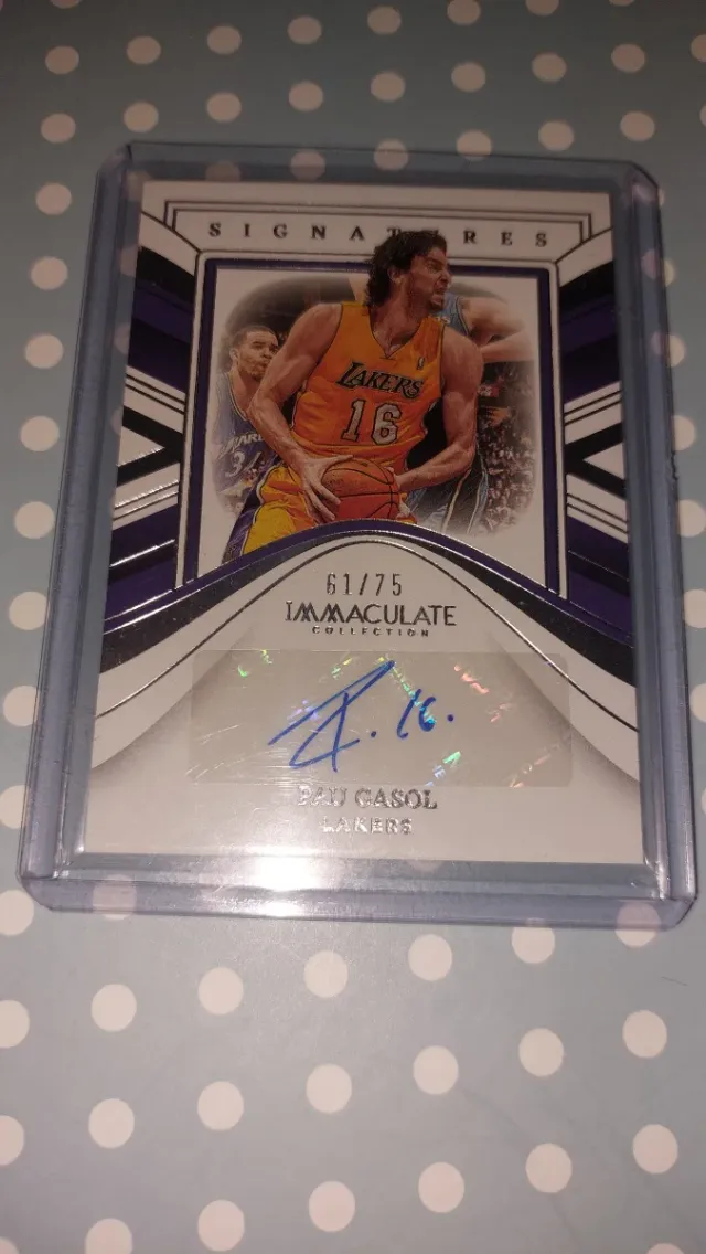 Detalles del productoTarjeta de Pau Gasol de la colección Immaculate de los Lakers, edición limitada 61/75. Pago bizum o transferencia bancaria