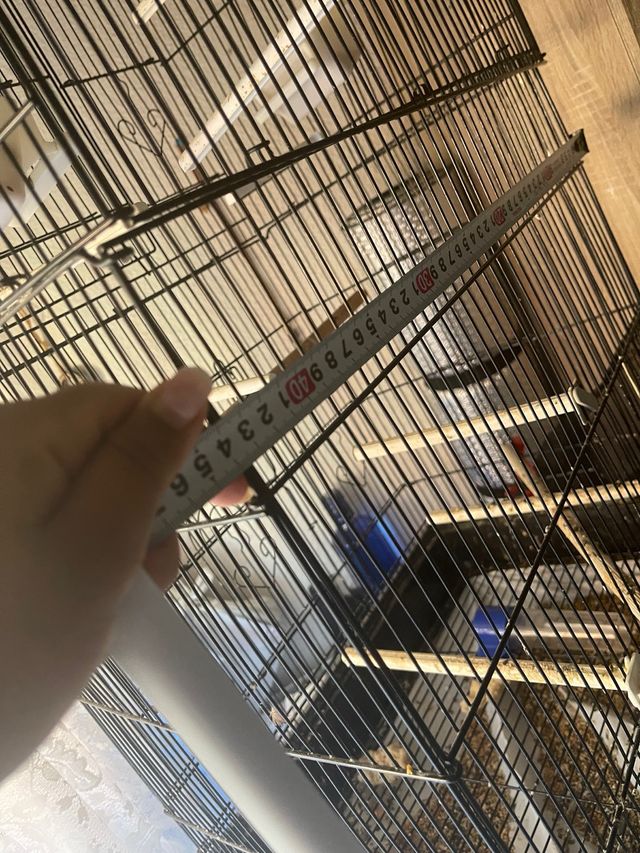 Se vende jaula para pájaros. - Jaula metálica de color negro. - Incluye accesorios como comederos y bebederos.