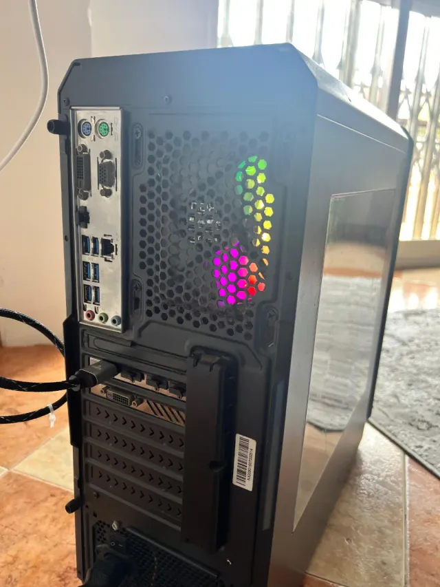 Ordenador de sobremesa para gaming con iluminación LED. - Puertos USB y conexiones de audio. - Ventilador con luces RGB. Gtx 1060 6gb vram Core i5 6600 16 gb ram 1tb hdd