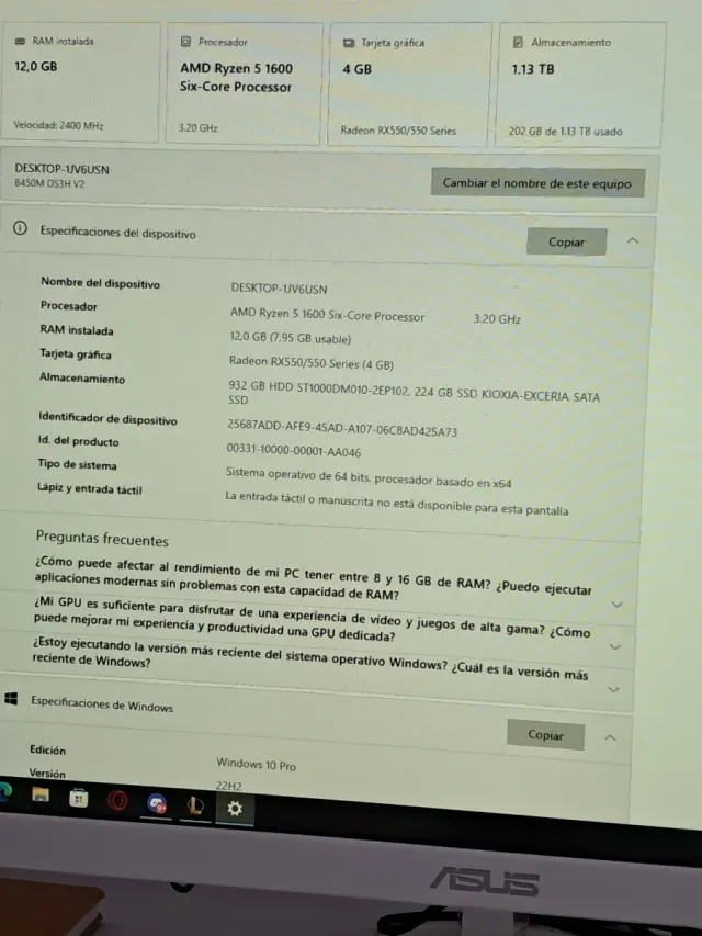 - Procesador: AMD Ryzen 5 1600 Six-Core Processor 3.20 GHz