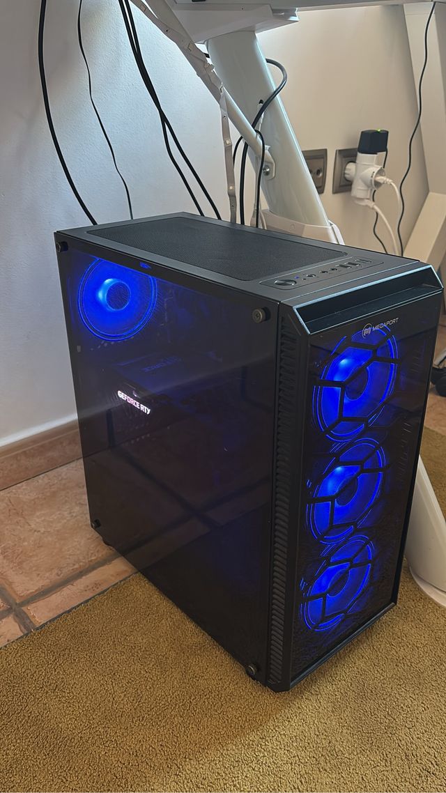Detalles del productoOrdenador de sobremesa con gráfica RTX 3060 y luces LED azules.