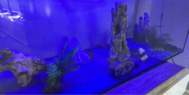 Se vende pecera con decoraciones ,barra led de día y noche ,depuradora ,calentador de agua ,oxigenador....... más info chat .