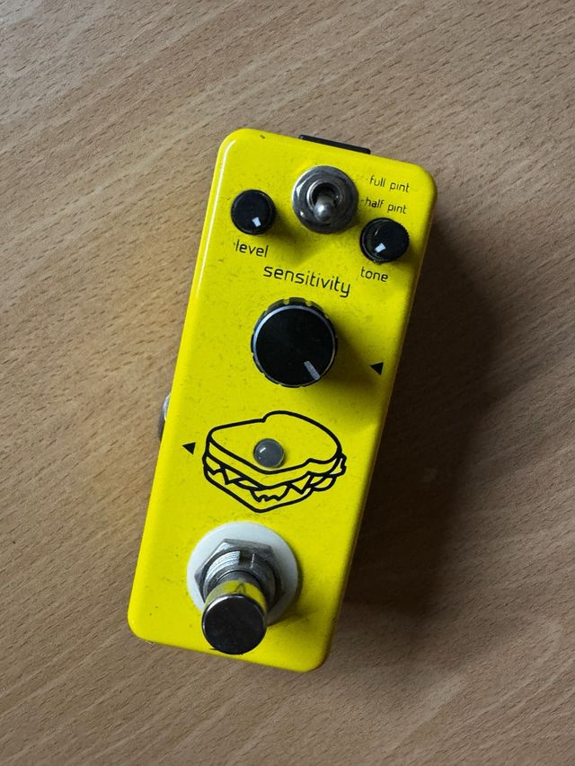 Detalles del productoPedal de efectos para guitarra, modelo Full Pint en color amarillo.