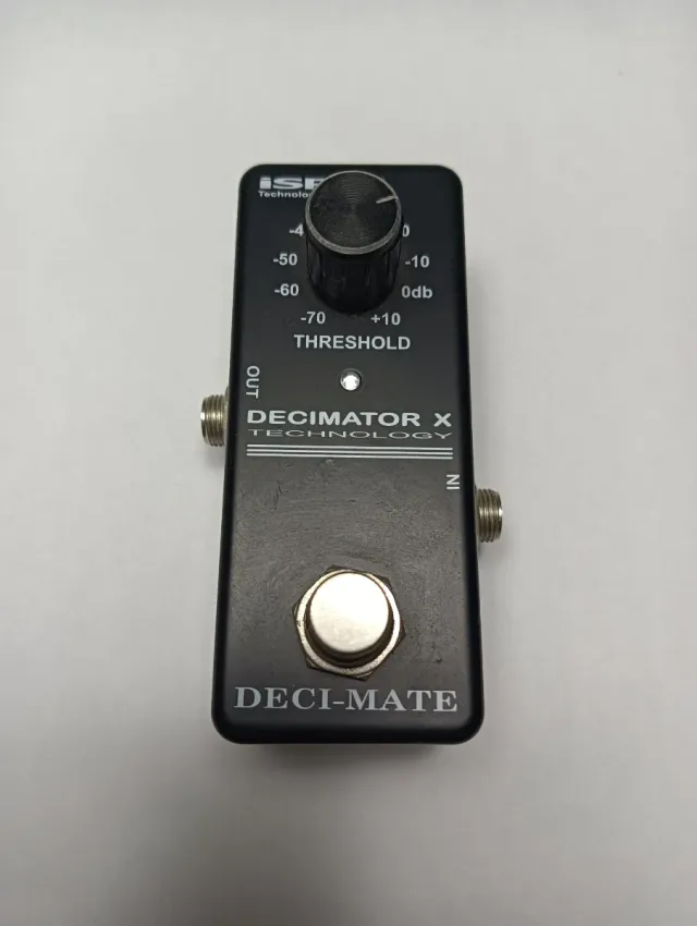 Pedal de efectos para guitarra ISP Decimator X con poco uso - Controles: Threshold, dB - Conexiones: IN, OUT - Diseño compacto y robusto.