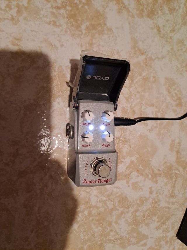Detalles del productoPedal joyo Raptor Flanger como nuevo por 30 €. Tiene su caja. Sonido flanger muy logrado y versátil por medio de sus controles. Usado siempre en casa y nunca se pisó el interruptor on/off ya que fue usado con pedalera Harley Benton FXL8 (no incluida). Muy poco uso.