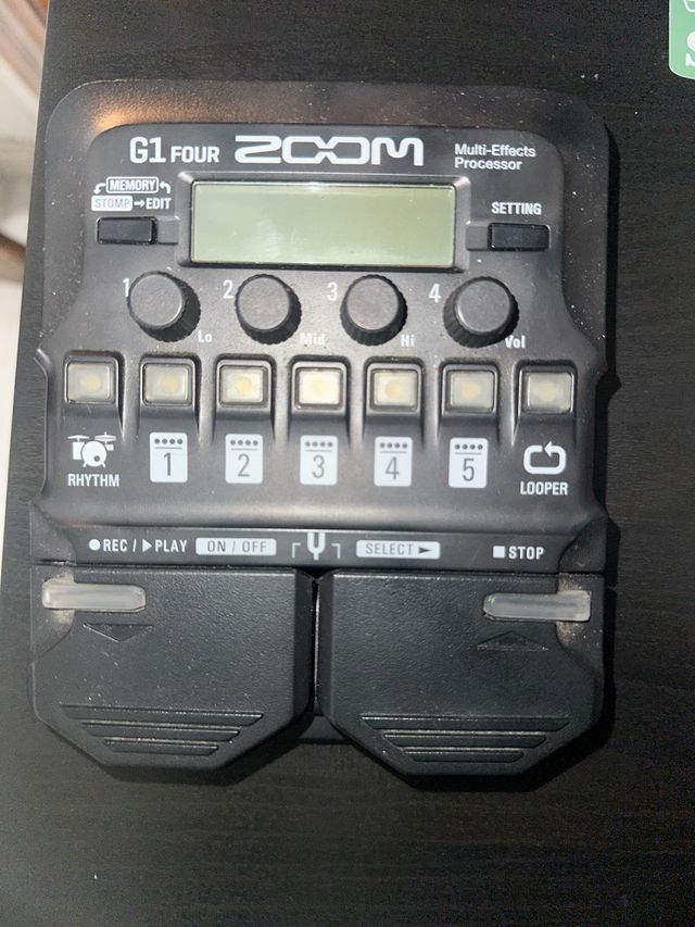 Pedal multiefectos Zoom G1 FOUR. - Pantalla LCD. - Controles de edición y ajustes. - Botones de selección y footswitches. -afinador -looper -50 efectos incorporados
