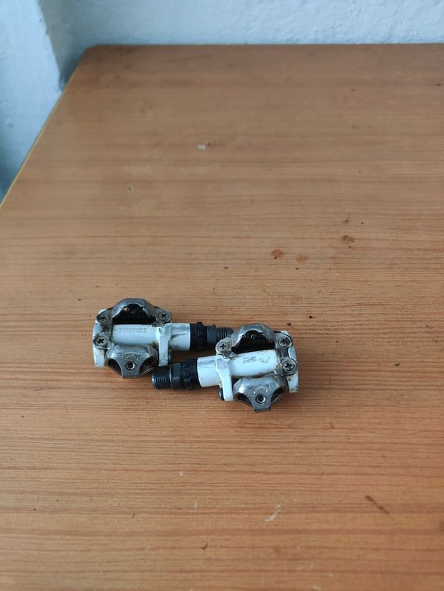 Pedales automáticos Shimano en buen estado. - Mecanismo de enganche y liberación. - Eje roscado estándar.