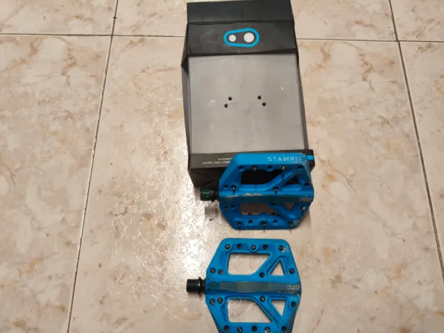 Pedales de plataforma Crankbrothers Stamp 1 en color azul.