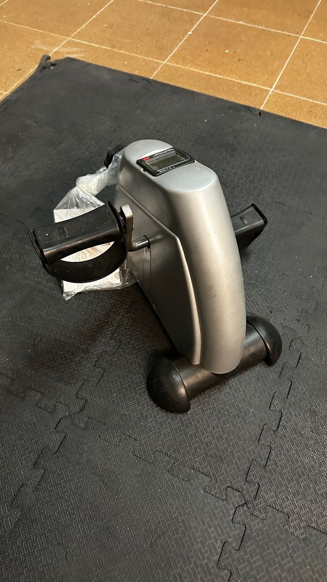 mini pedaleador o mini bicicleta estática. Este dispositivo compacto permite realizar ejercicios de bajo impacto para las piernas y los brazos desde la comodidad de una silla o sofá.