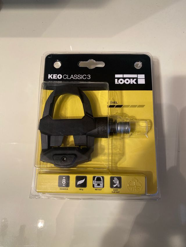 Pedales de carretera LOOK KEO CLASSIC 3. - Modelo: KEO CLASSIC 3 - Marca: LOOK - Tensión de cala: 8 - Peso: 140 g - Superficie de apoyo: 400 mm² - Easy clip-out