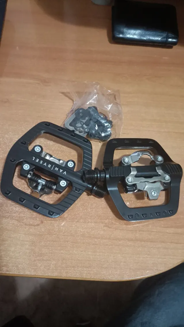 Se venden pedales mixtos de la marca Van Rysel. - Pedales con un lado para cala y otro plano. - Incluyen las calas y tornillería.