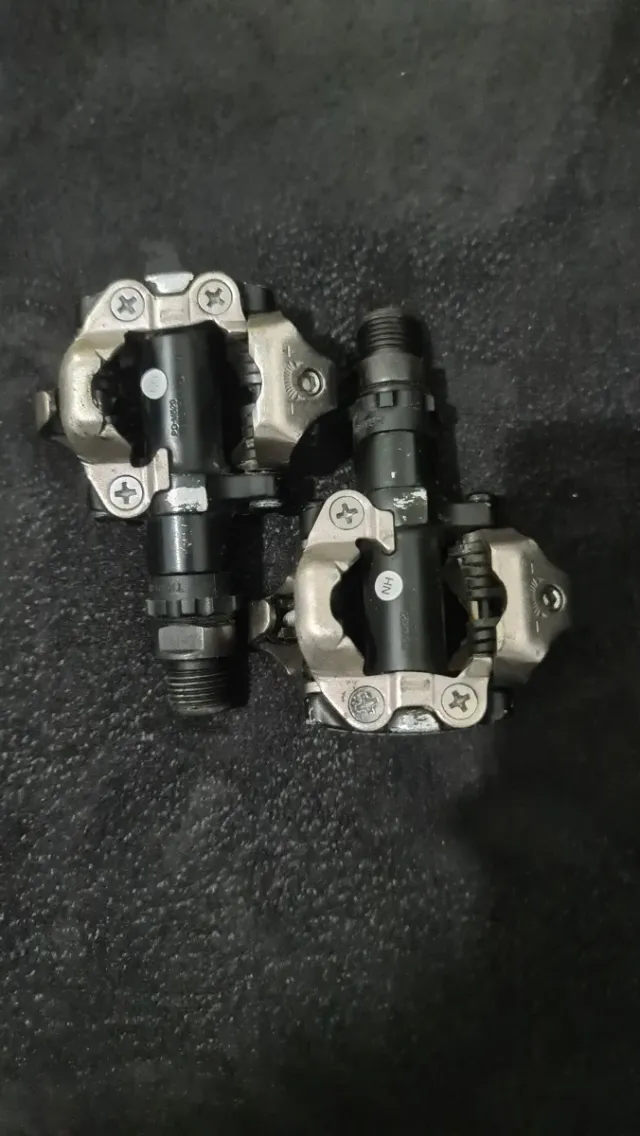 Par de pedales automáticos para bicicleta de montaña. - Diseño robusto y ligero. - Mecanismo de enganche SPD. - Eje roscado estándar. - Muy poco uso