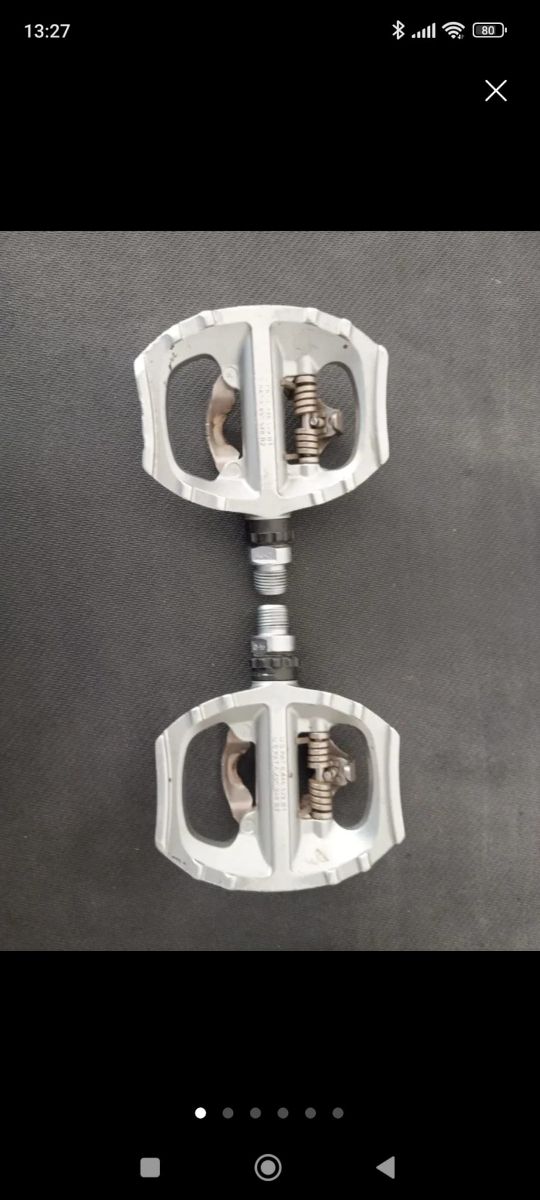 Par de pedales Shimano para bicicleta. - Diseño en color plateado. - Mecanismo de clip. - Construcción robusta.