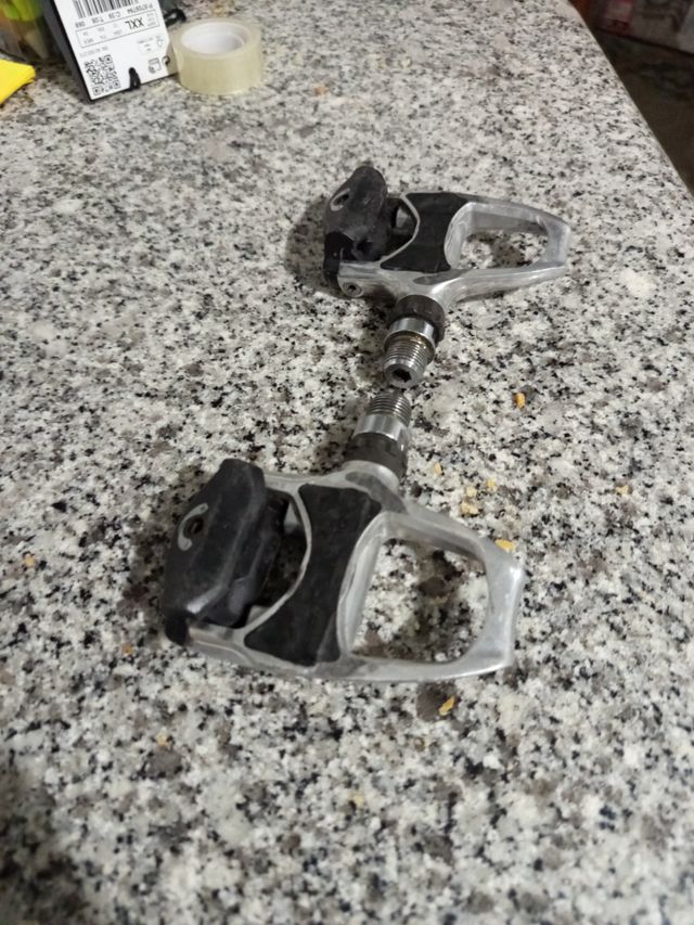Pedales de carretera Shimano Dura Ace más unas calas de regalo - Sistema de anclaje SPD-SL.