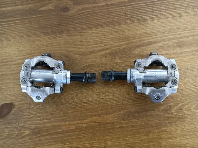 Pedales automáticos Shimano PD-M540 en color plata. - Diseño ligero y duradero. - Sistema de anclaje SPD. - Eje de acero. - Incluyen calas a estrenar.