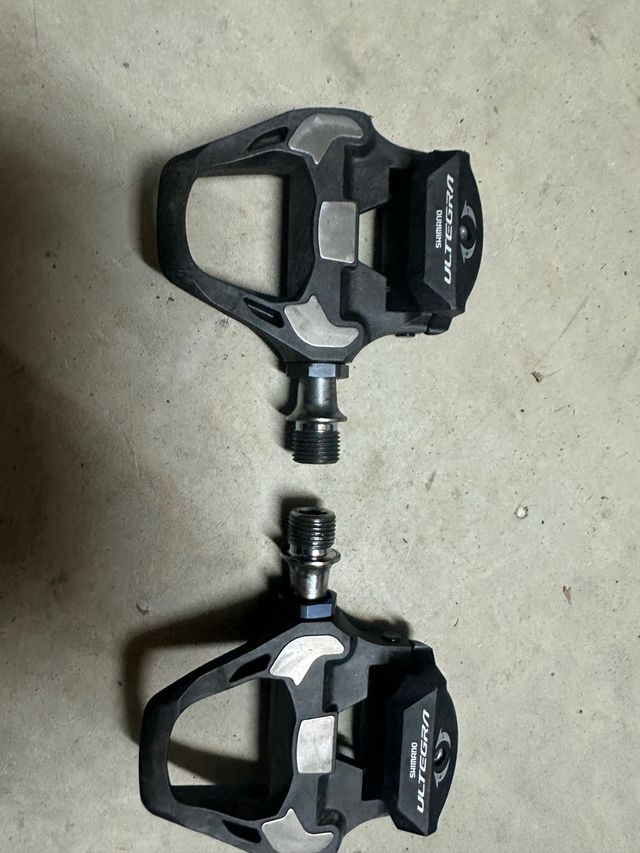 Pedales de carretera Shimano Ultegra. Tiene un pequeño roce ver foto. - Diseño ligero y aerodinámico. - Eje de acero inoxidable. - Compatibles con calas SPD-SL.