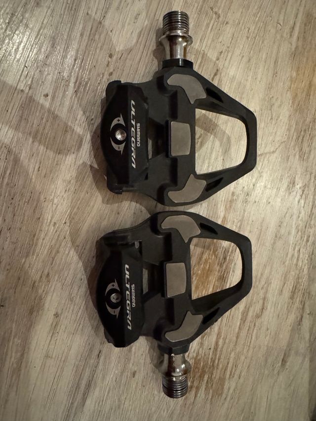 Par de pedales Shimano Ultegra R8000. - Diseño ligero y aerodinámico. - Cuerpo de carbono. - Eje de acero inoxidable.