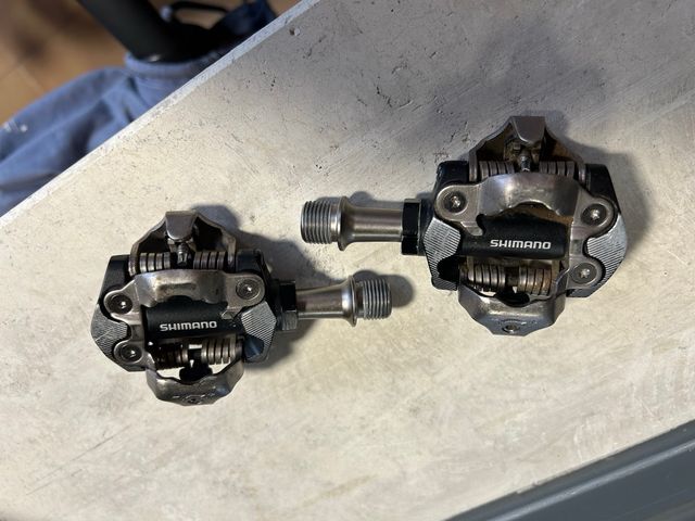 Par de pedales Shimano XT PD-M8100 como nuevos. Se han usado unos 300 Km. Se aprecia que apenas tienen marcas ni roces. Diseño robusto y duradero. Mecanismo de enganche SPD.