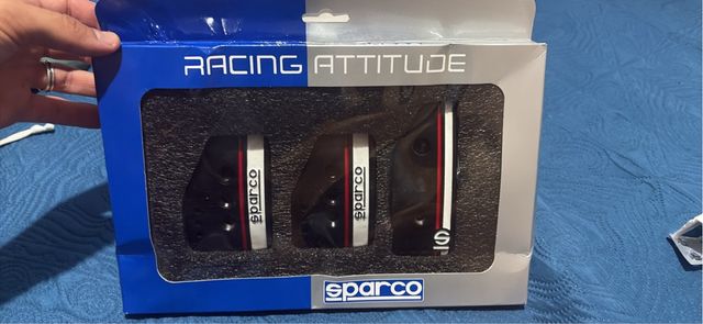 Set de pedales universales de la marca Sparco. - Diseño deportivo con detalles en rojo y blanco. - Acabado negro. - Incluye tres pedales.