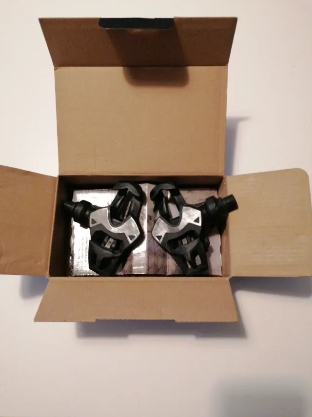 Pedales para bicicleta de carretera de la marca Time. Usados sin calas. - Diseño deportivo. - Mecanismo de anclaje. - Cuerpo de composite.