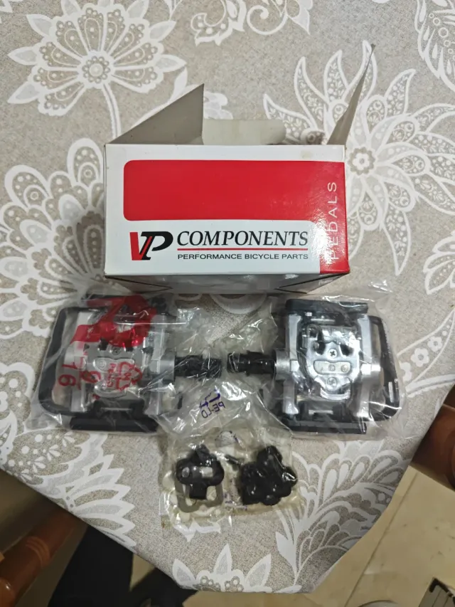 Detalles del productoSe venden pedales de bicicleta VP Components con sistema de enganche para calas.