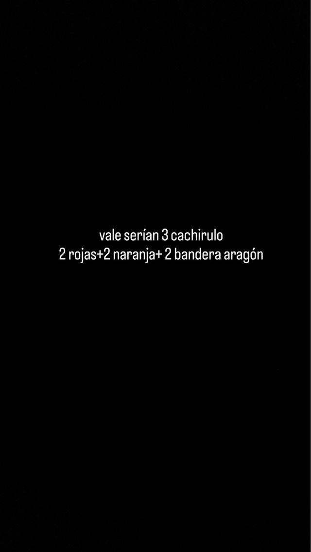 . - 3 cachirulos. - 2 artículos de color rojo. - 2 artículos de color naranja. - 2 banderas de Aragón.